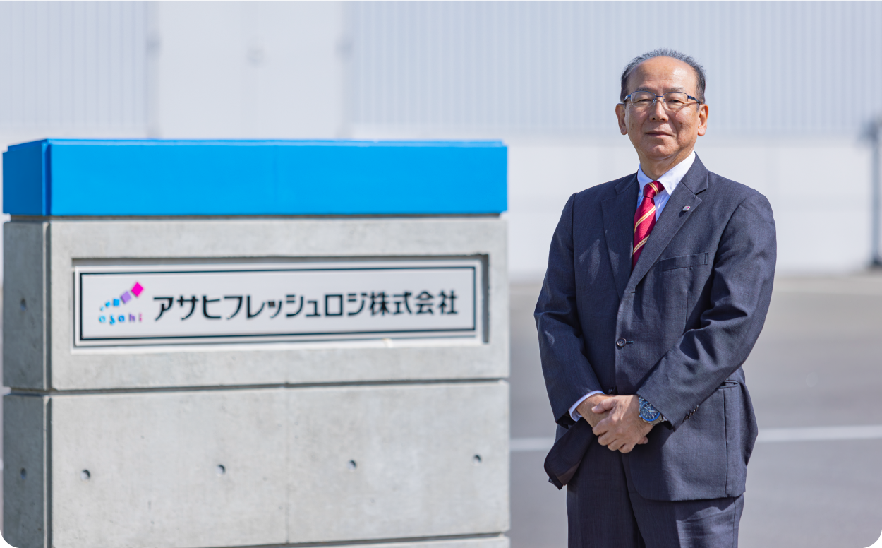鹿児島県出身。大学では応用微生物学・発酵学を学ぶ。乳酸菌への関心から、卒業後は食品メーカーに入社。生産管理や製造現場、経営企画、商品開発など、あらゆる分野を経験。品質管理や生産性向上に注力し、特に食品業界における安全性の重要性を実感する。同時に物流の在り方にも課題意識を持ち、食品の生産現場だけではなく、物流の分野にも革新が必要だと考え、2017年に物流業界へと転身。フレッシュ・ロジスティック(現アサヒフレッシュロジ)の代表取締役社長に就任。アサヒロジスティクスとの経営統合後も引き続き社長として舵を取り、現在に至る。